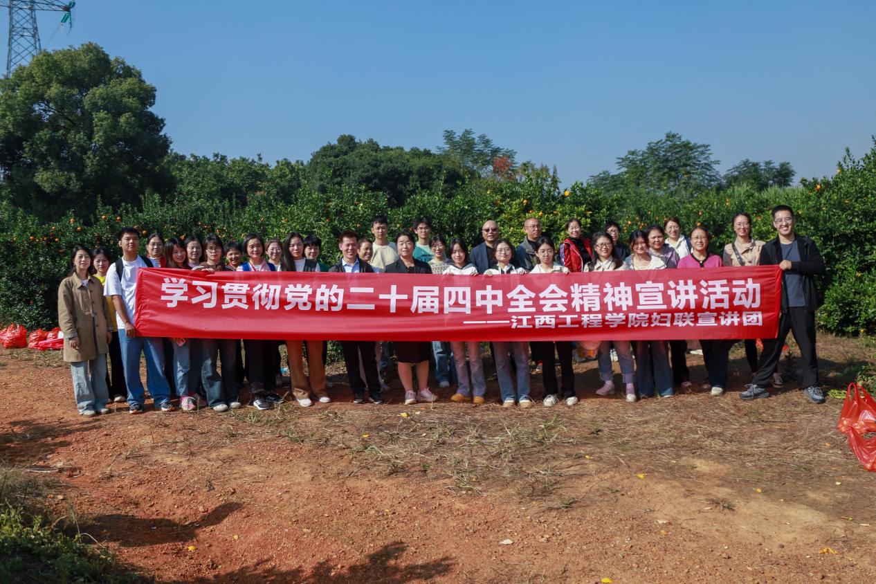 为认真学习贯彻党的二十届四中全会精神,引导新农人坚定发展信心、凝聚奋进力量,2025年11月15日,江西工程学院校工会、校妇联、校关工委联合马克思主义学院,组建宣讲团与助农实践队,组织50余名师生赴新余市高新区水西镇施家村,开展“学全会精神、采田间橘香、助乡村振兴”主题实践活动。