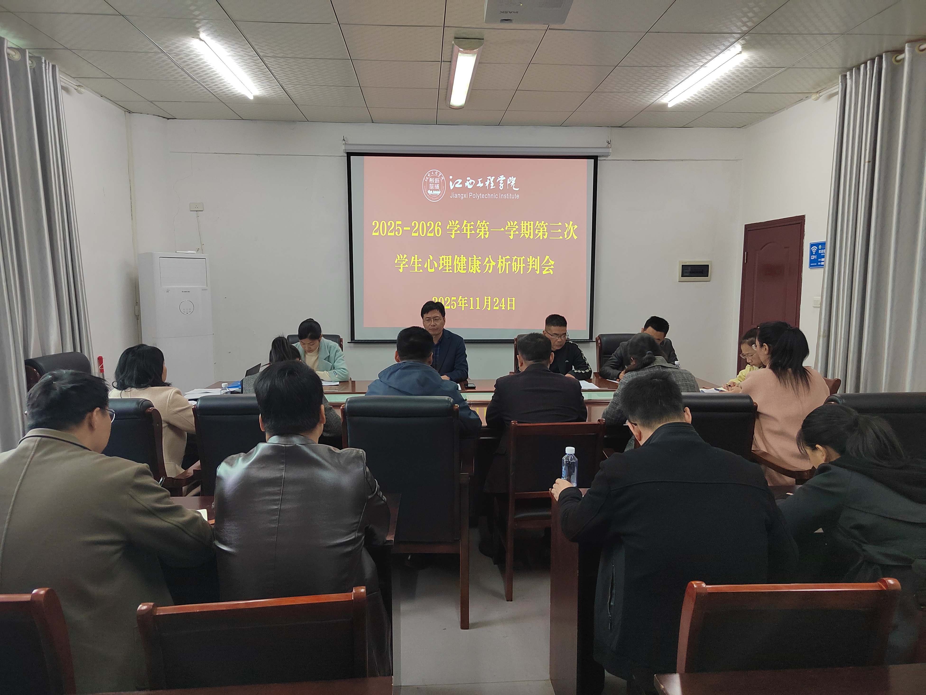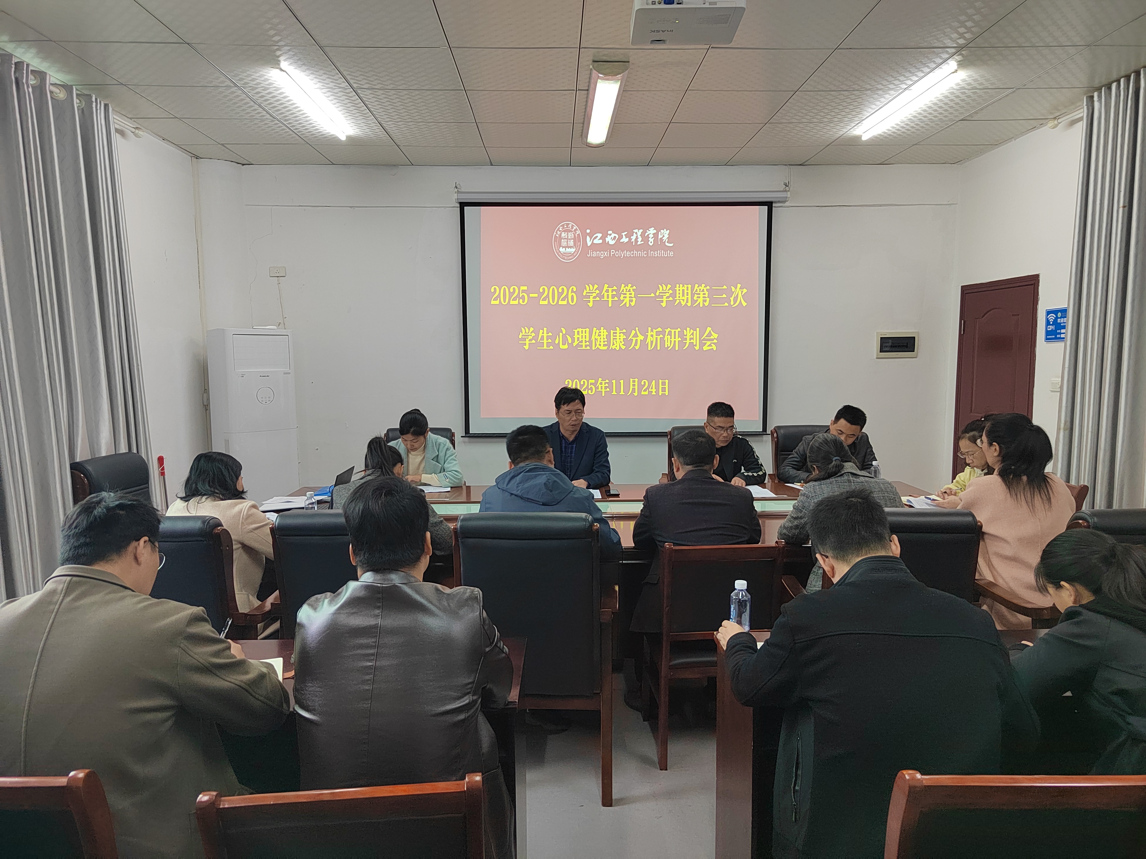 为了解学生心理健康状况,切实做好学生心理健康教育工作,提升心理育人实效,维护校园和谐稳定。2025年11月24日下午,我校在天工校区行政楼五楼会议室召开2025-2026学年第一学期第三次学生心理健康分析研判会。校党委副书记、副校长冯赟出席会议并讲话,学生工作处全体人员、各二级学院心理辅导站站长以及副书记参加了本次会议。
