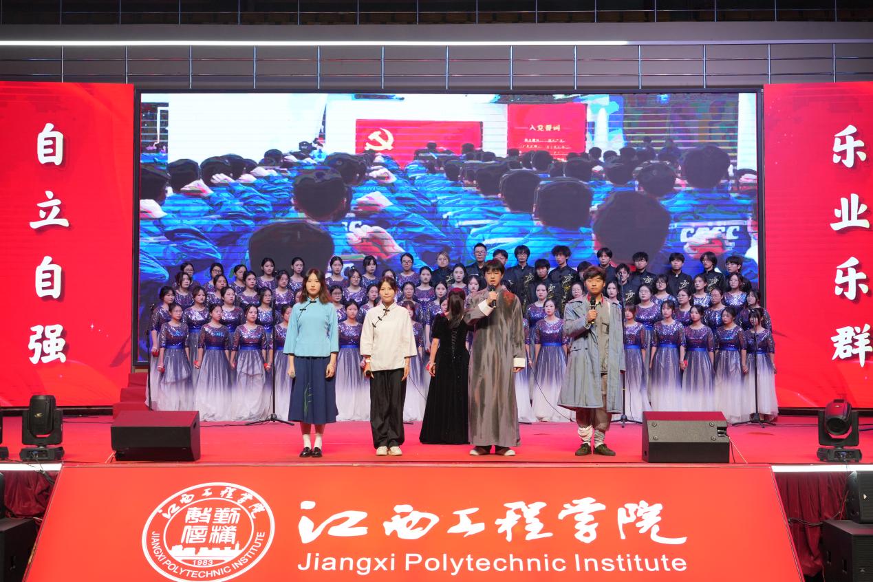 来自7个学院师生依次登台,用饱满的热情和激昂的歌声,将现场观众的思绪带回到九十年前那段风雨如晦的岁月。《我们走在大路上》《大中国》等一首首镌刻着时代印记的经典曲目,唱出了当年爱国学子对民族存亡的呐喊与抗争;而《万疆》《如愿》等新时代的主旋律,则深情抒发了江工青年对党、对祖国、对人民的赤诚与热爱。各参赛队伍在演唱中融入了诵读红色家书、舞蹈、情景表演等多种艺术形式,为经典作品注入了崭新的时代内涵,让“一二·九”精神在沉浸式美育思政实践中跨越时空、薪火相传。