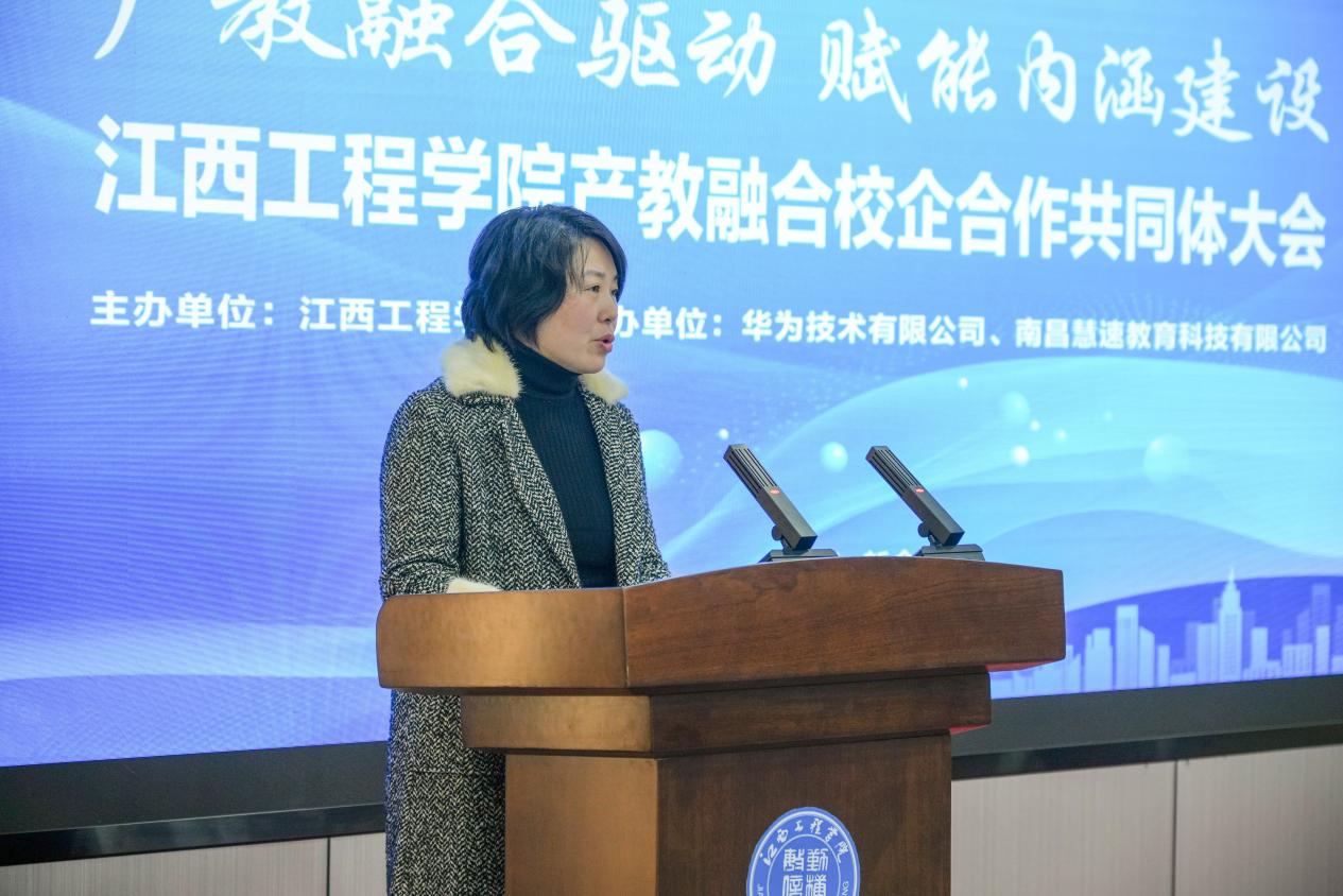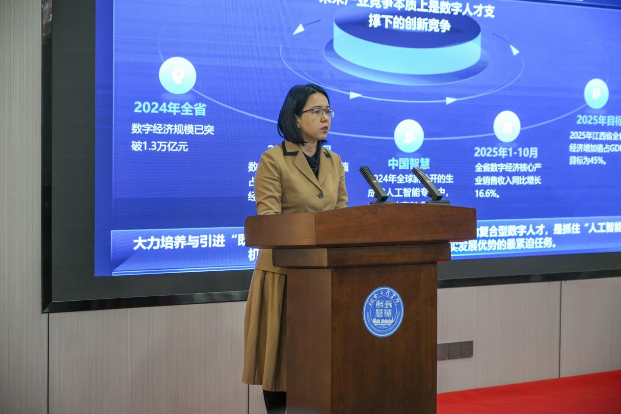 新余市仙女湖区委书记潘丽云在大会上致辞,他充分肯定江西工程学院在服务地方产业、科技创新和人才培养中的重要作用,强调深化产教融合是区域经济转型升级与新质生产力培育的关键,区委、区政府将优化政策环境、搭建高能级平台,支持校企在人才共育、技术研发、成果转化等领域深度合作,助力地方高质量发展,彰显校地协同共生共识。