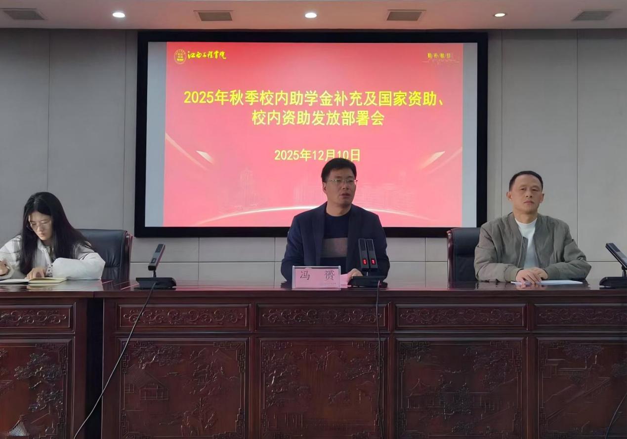 12月10日上午,校党委副书记、副校长冯赟主持召开2025年秋季校内助学金补充及国家资助、校内资助发放部署会,就本学年各项资助的发放工作作出系统安排与纪律强调。学工处、校纪委负责人,各二级学院党总支(直属党支部)书记、全体辅导员(班主任)及学生代表参加会议。