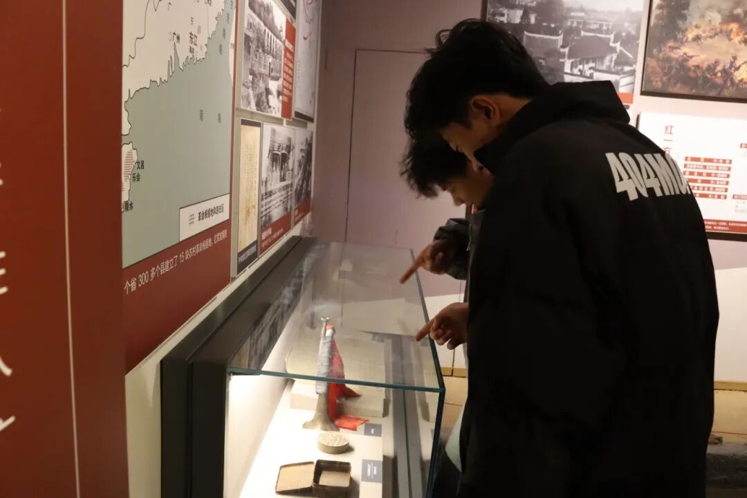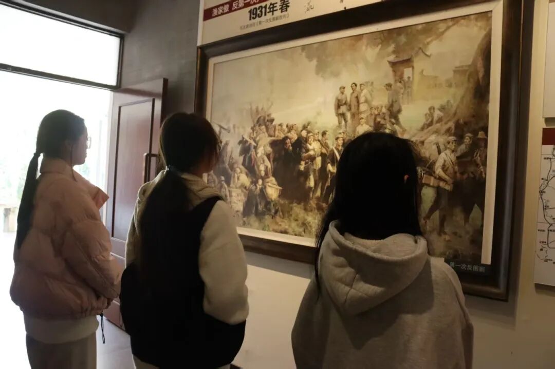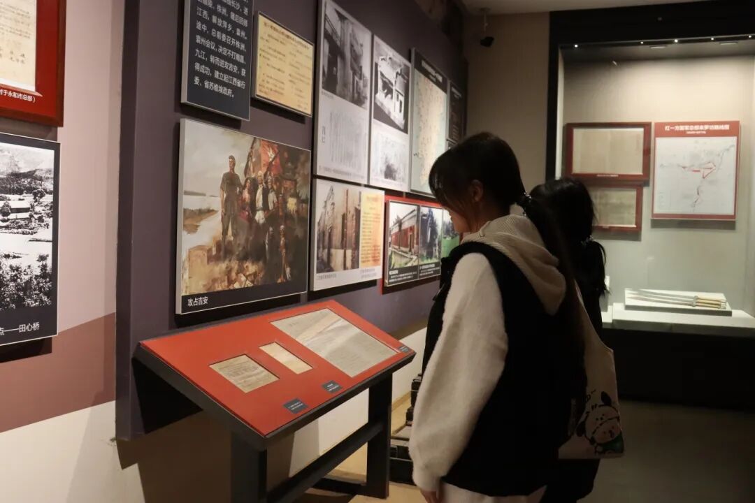 在罗坊会议历史陈列区,学生们通过会议复原场景和珍贵文献资料,深入了解这一会议的重大历史意义。展柜中红军使用过的武器装备、会议决议文件等珍贵文物,生动再现了革命先辈在关键时刻的英明决策。在“兴国调查”专题展区,毛泽东同志深入基层调查研究的事迹让学生们深刻体会到中国共产党人求真务实、密切联系群众的优良作风。![]()