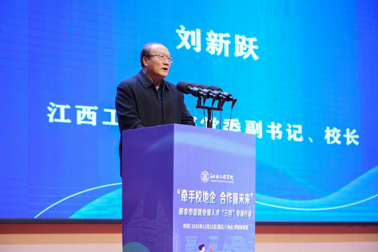 12月12日的核心对接环节亮点频现。江西工程学院校长刘新跃在致辞中表示,学校将紧扣新余钢铁、锂电新能源、电子信息等主导产业需求,持续优化学科专业布局。同时提出合作期待,希望与企业共筑“入学即入企、毕业即就业”的订单式人才培养高地,共拓就业创业空间、推动岗位与校园创新资源精准对接,共建技术攻关协同机制,将高校智力资源转化为产业发展动能。