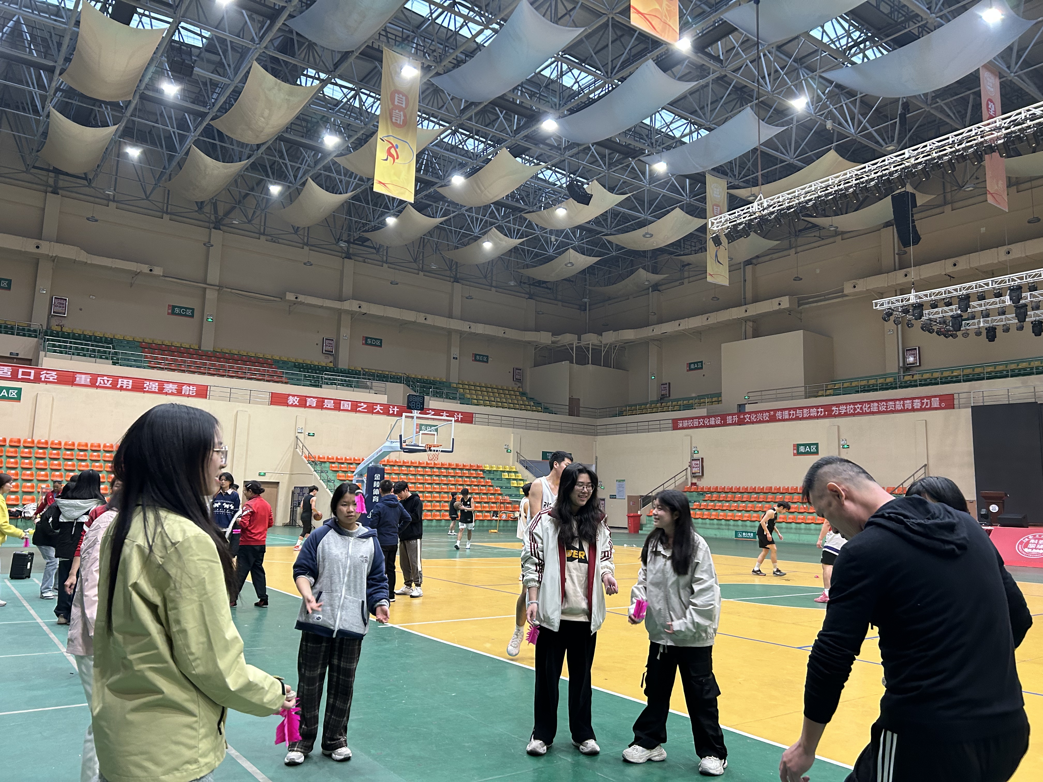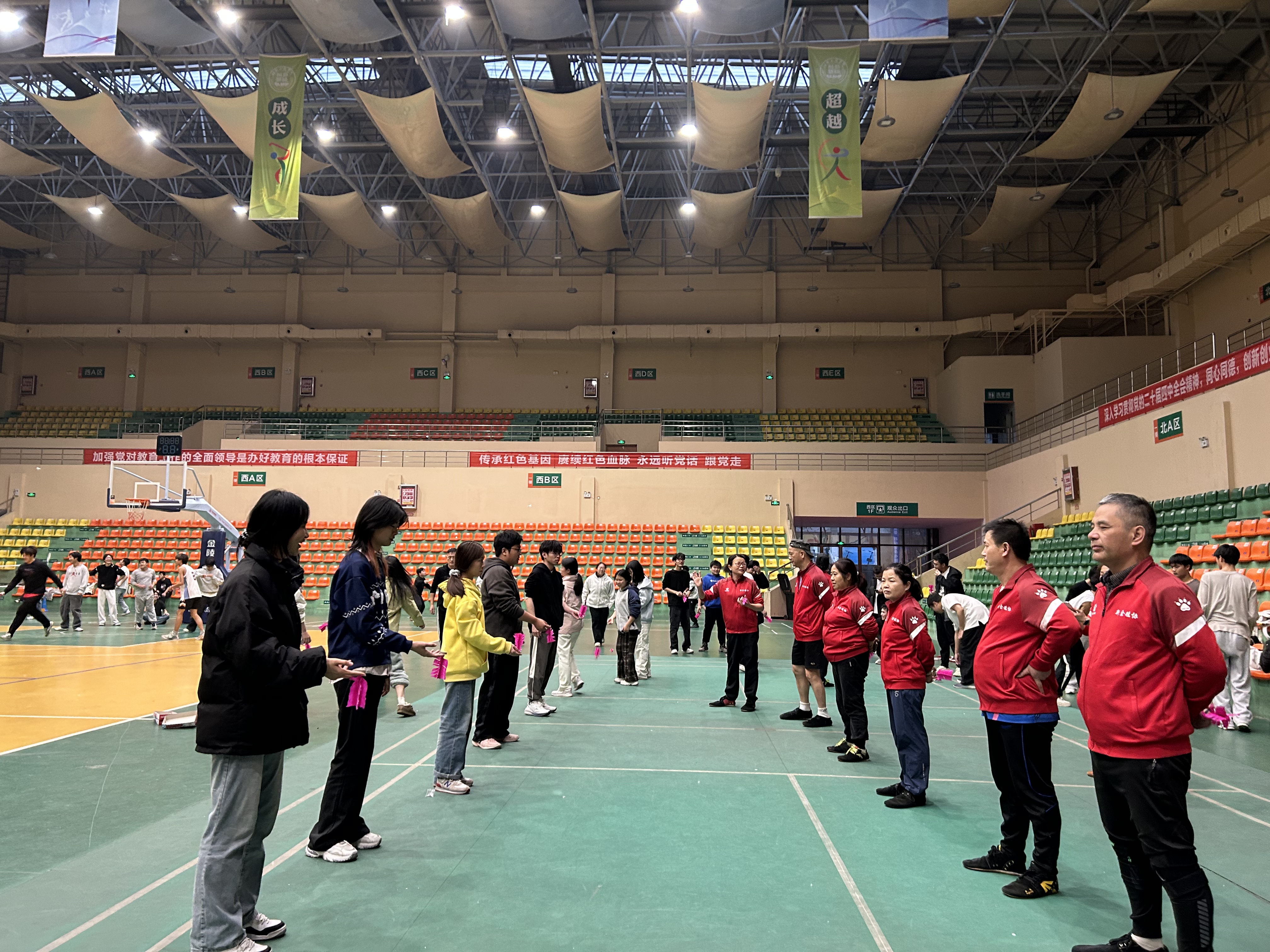 活动精心设置“基础教学—分组练习—趣味竞赛”三大环节,兼顾专业性与趣味性。来自新余市毽球协会的十余位教练员化身“公益导师”,耐心细致地向师生们讲解盘踢、蹦踢等基础动作要领,手把手指导动作规范。各民族师生迅速融入其中,分组开展练习,体育馆内毽子翻飞、笑声不断。在随后的“一对一挑战赛”“班级团体传接赛”中,大家团结协作、奋勇争先,充分展现了各民族师生昂扬向上的精神风貌。不同民族的学子默契配合、彼此鼓劲,在攻防转换间加深了了解,在欢声笑语中凝聚了情谊,切实营造了各民族共居共学、共建共享、共事共乐的良好氛围。