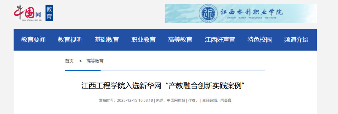 12月11日,第十六届新华网教育论坛在北京举办,活动现场公布2025年全国教育高质量发展案例征集结果。江西工程学院凭借产教融合领域的系统性创新与亮眼成效,成功入选“产教融合创新实践案例”。这一成果标志着学校在深化应用型人才培养改革、推进校企协同育人方面取得突破性进展,获得国家级权威平台高度认可。