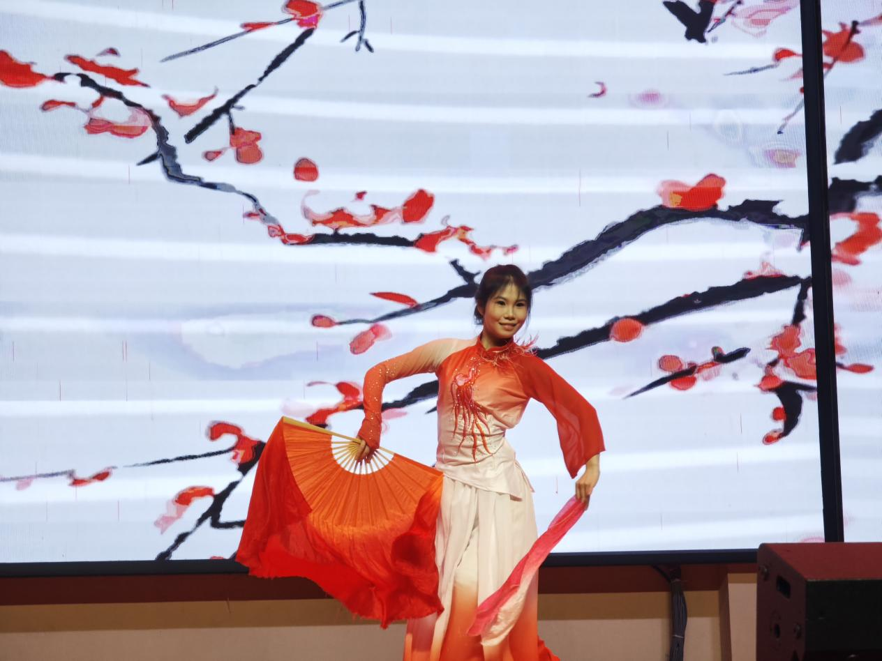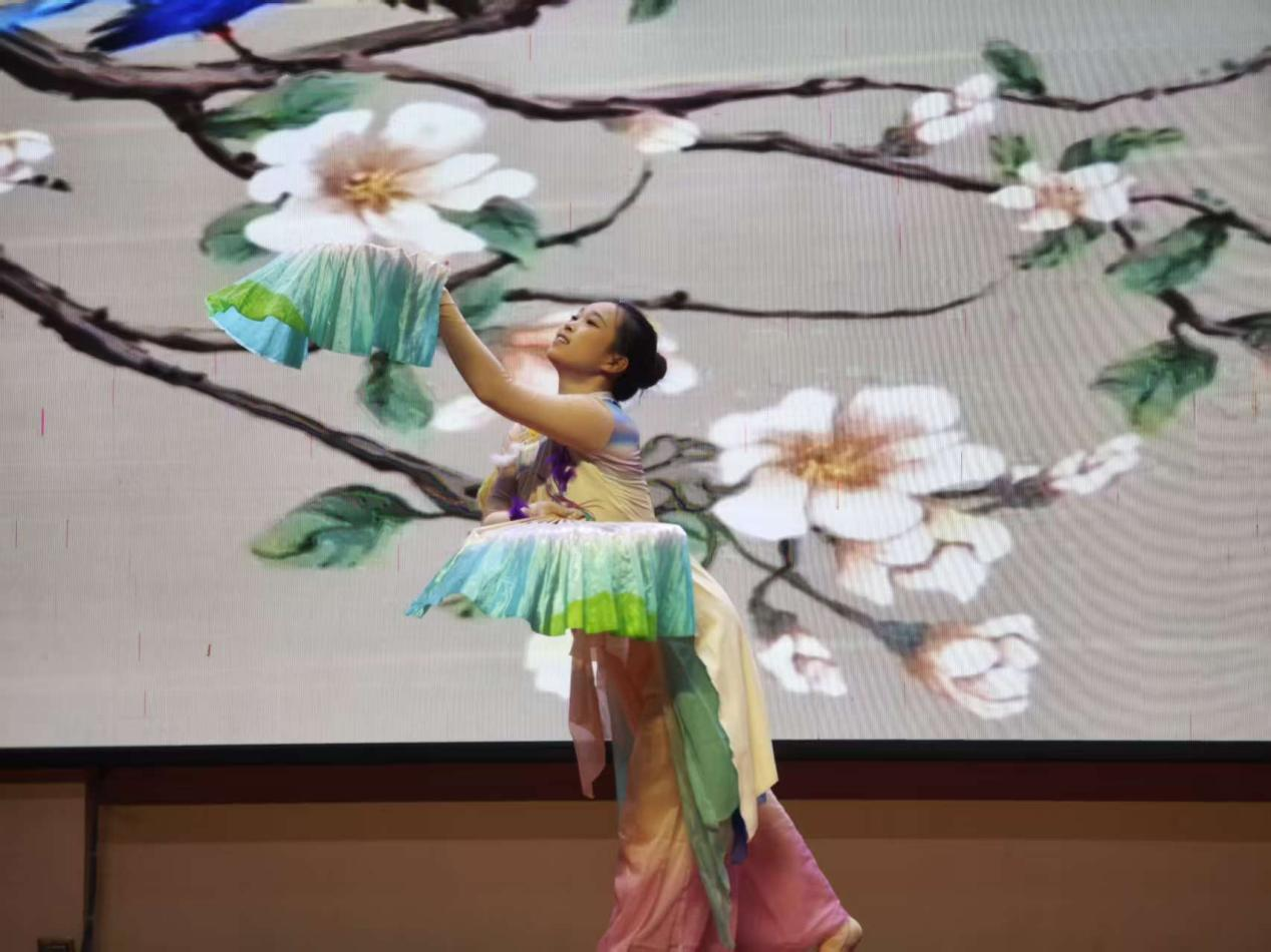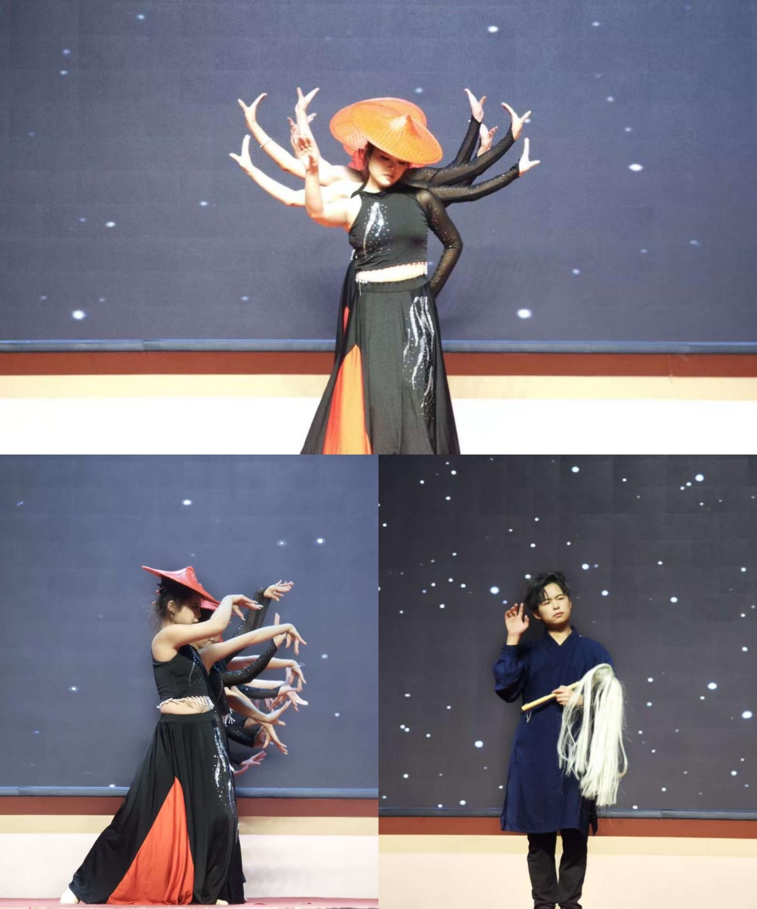 演出在热情洋溢的群舞《陶醉了》中拉开序幕,周文欣、刘雅楠等十余名学子以流畅的肢体语言和饱满的情绪,瞬间点燃全场氛围。随后,唐祺的独舞《尘·门》以细腻的身段与深邃的意境,展现了舞者内心的孤独与追寻;群舞《清风徐来》则通过柔美舒展的动作,勾勒出一幅如诗如画的江南画卷。