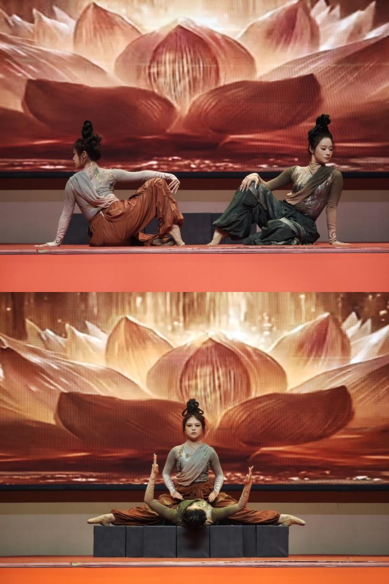 双人舞《佛窟惊影》由李萌、易子洋联袂演绎,两人默契的配合与强烈的戏剧张力,令观众仿佛置身于神秘的石窟之中;而群舞《纸扇书生》则以古典舞的儒雅风韵,展现出书生们的潇洒与才情。易子洋再次亮相独舞《柘枝舞芳华》,以其出色的控制力与情感投射,赢得阵阵掌声。