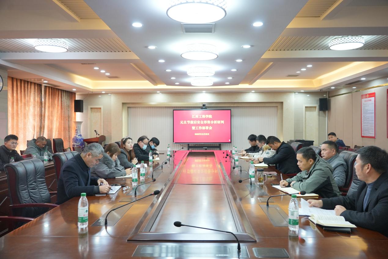 为深入贯彻落实省教育厅全省教育系统安全工作视频会议精神,切实筑牢校园安全防线,保障元旦假期前后校园和谐稳定与师生生命财产安全,我校第一时间召开安全形势分析研判暨工作部署会,精准研判风险态势,全面部署重点任务。党委委员、校长助理邹建民主持会议,各教学院及职能部门安全专干参加会议。