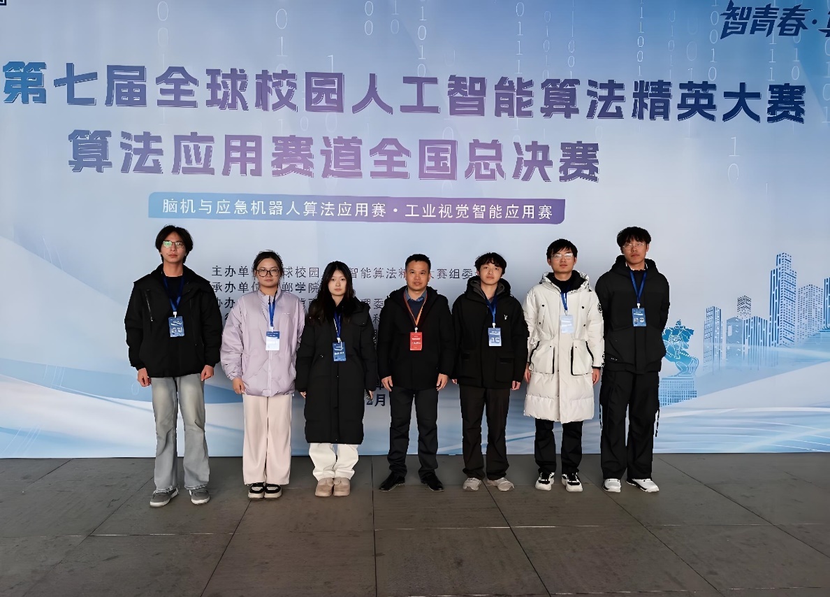 2025年12月16日,第七届全球校园人工智能算法精英大赛工业视觉赛道全国总决赛在河北邯郸举行,赛项汇聚了华中科技大学、南京大学、中南大学等全国高校115支队伍同台竞技。我校人工智能与数据科学学院机器人工程专业的三支学生队伍,凭借专业功底、稳定的临场发挥与创新性的技术方案,一举斩获全国一等奖2项(位列该赛道全国第一),全国二等奖1项。