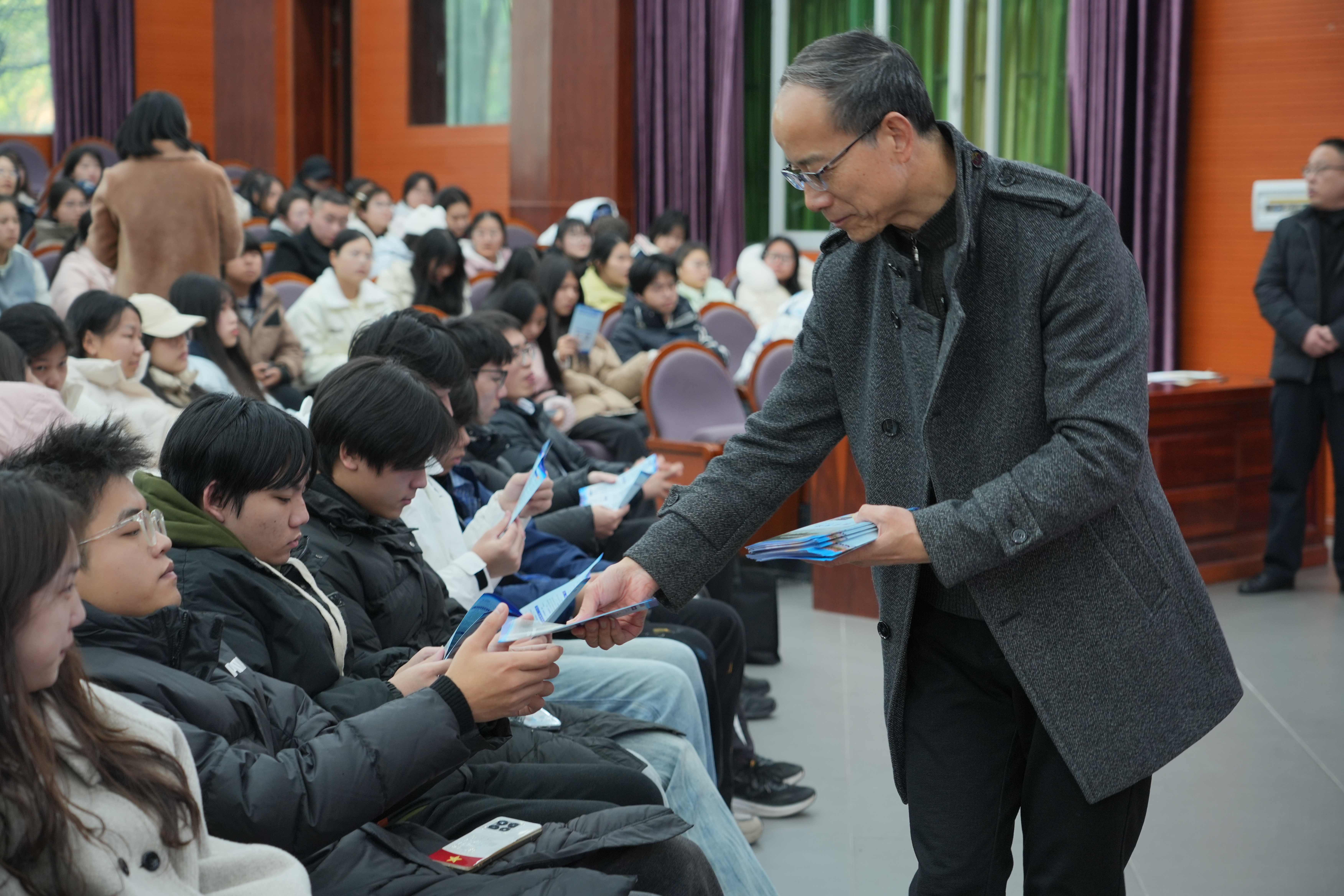 讲座期间,全体师生还共同观看了《新余市市情教育宣传片》,并领取了市情与人才政策宣传手册,进一步加深了对新余产业蓝图与引才诚意的直观了解。