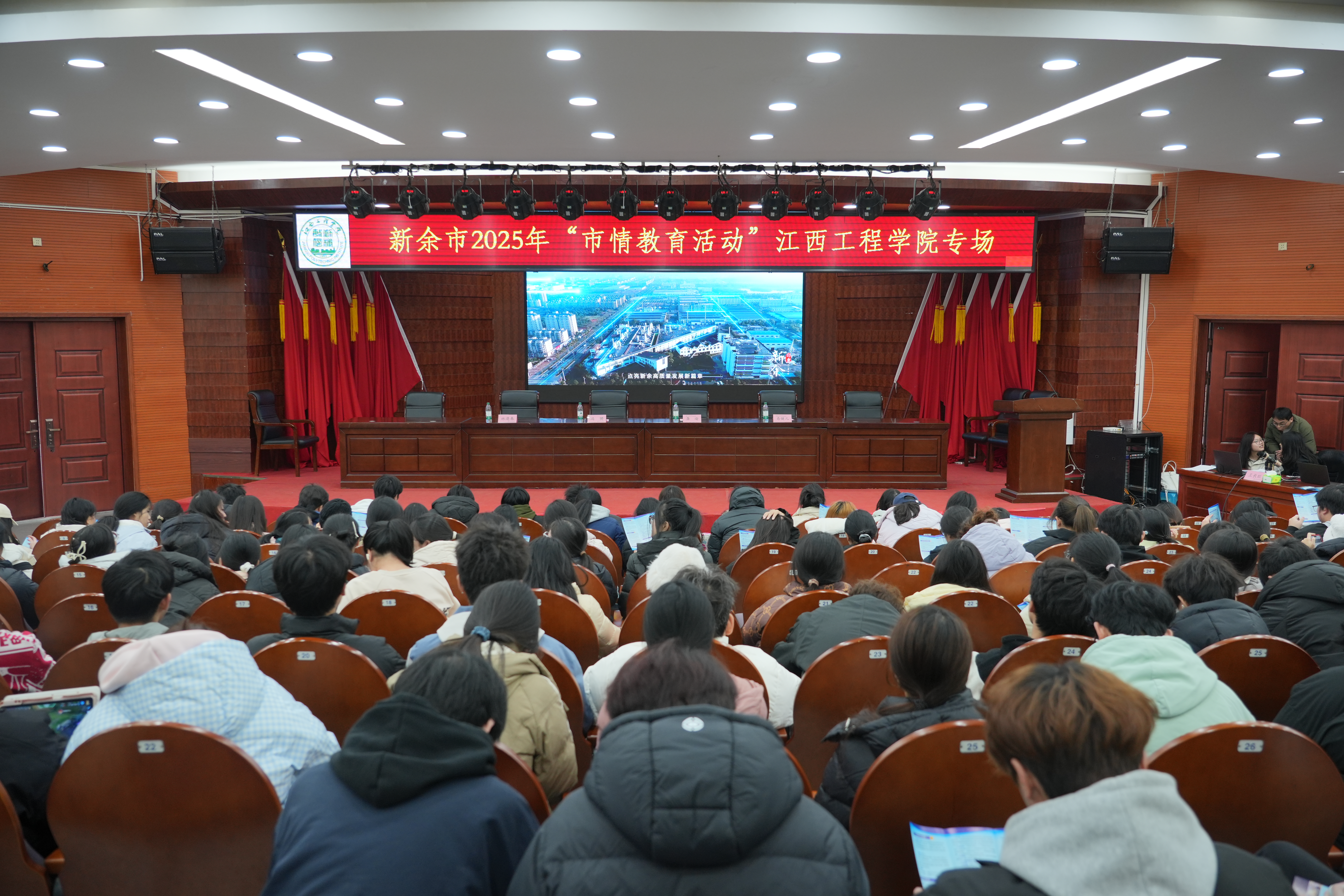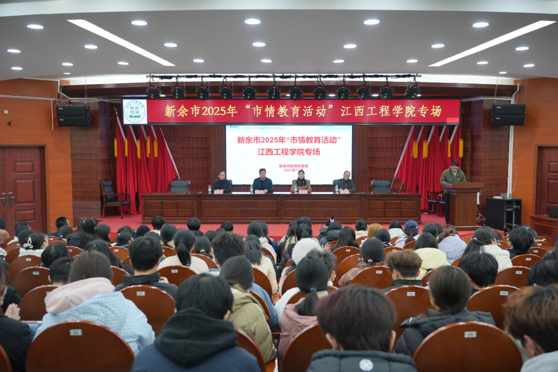 12月26日下午,新余市2025年“市情教育活动”江西工程学院专场在学校天工校区学术报告厅一楼开展。新余市教体局党委委员、副局长龚瑜,校党委副书记、副校长冯赟,市教体局相关负责同志、学校相关部门负责人和320余名师生参加活动。