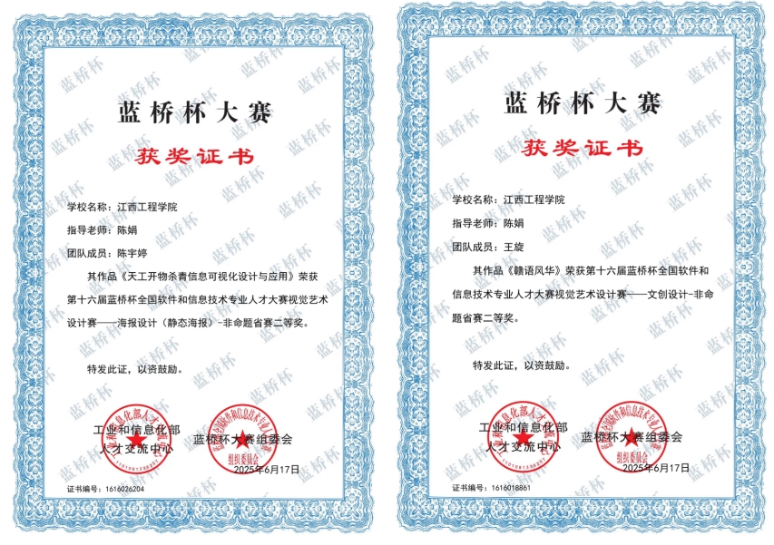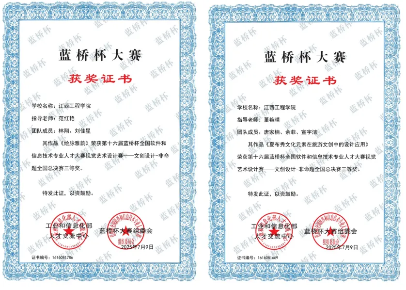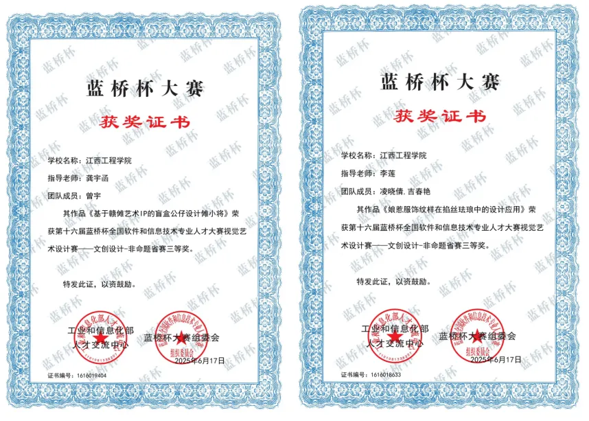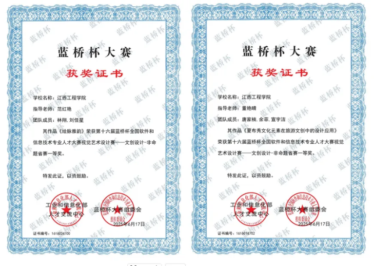 2025年蓝桥杯全国软件和信息技术专业人才大赛成绩揭晓。抱石艺术学院视觉传达设计专业学子凭借出色的专业素养与创新实践能力,在数字艺术设计赛项中取得历史性突破,共荣获国家级奖项2项,省级奖项13项。