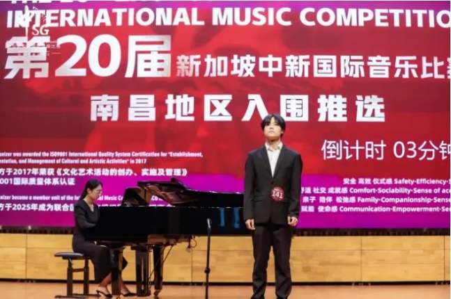 2025年11月,第20届新加坡中新国际音乐比赛江西赛区选拔赛在南昌举办,抱石艺术学院音乐表演专业派出优秀学子参赛,取得了一等奖3项,二等奖6项,三等奖7项,优秀奖5项的优异成绩。我校教师彭鉴祺受邀担任了本届比赛民乐组的评委工作,其专业水准获得了赛事组委会及同行的高度评价。这不仅体现了彭鉴祺老师个人的学术影响力,也提升了抱石艺术学院音乐表演专业在国际专业赛事中的知名度与参与度。此次国际赛事之旅,为学生们提供了宝贵的实践与交流平台,检验了教学成果,开阔了艺术视野。