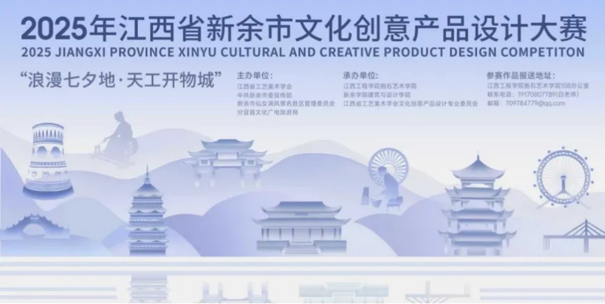 江西省新余市文创产品设计大赛是由江西工艺美术学会指导,中共新余市委宣传部、新余市仙女湖风景名胜区管委会主办,江西工程学院抱石艺术学院承办的全省性赛事。旨在挖掘新余优势地方文化资源,汇聚优秀创意设计力量,激发文化创新创造活力的赛事。
