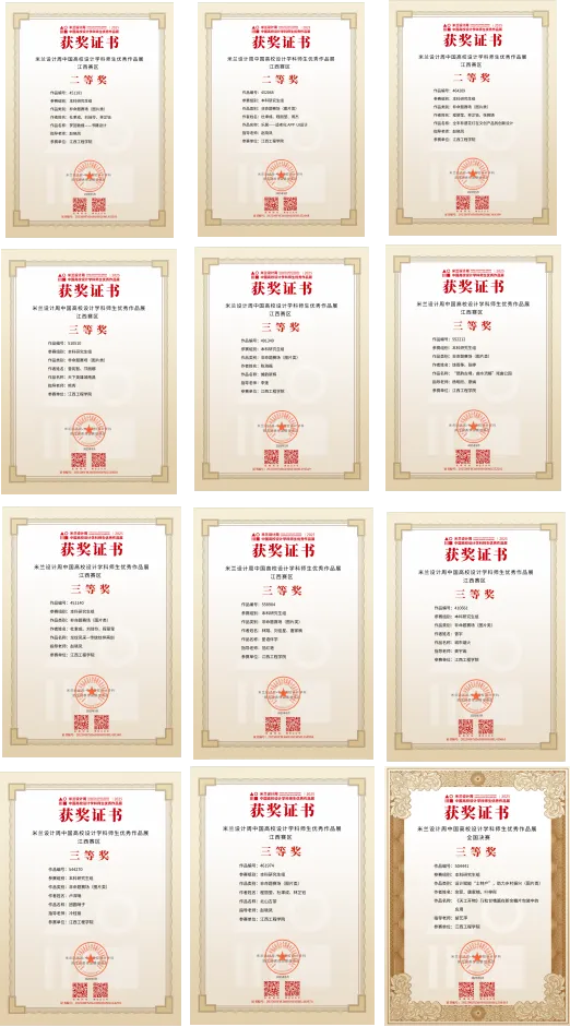 2025年,第九届“米兰设计周——中国高校设计学科师生优秀作品展”全国总决赛获奖名单正式公布。抱石艺术学院学子作品经过校级选拔、省级评审,最终在激烈角逐中脱颖而出,共斩获奖项14项,其中,全国总决赛三等奖1项,江西赛区一等奖1项、二等奖4项,三等奖8项。