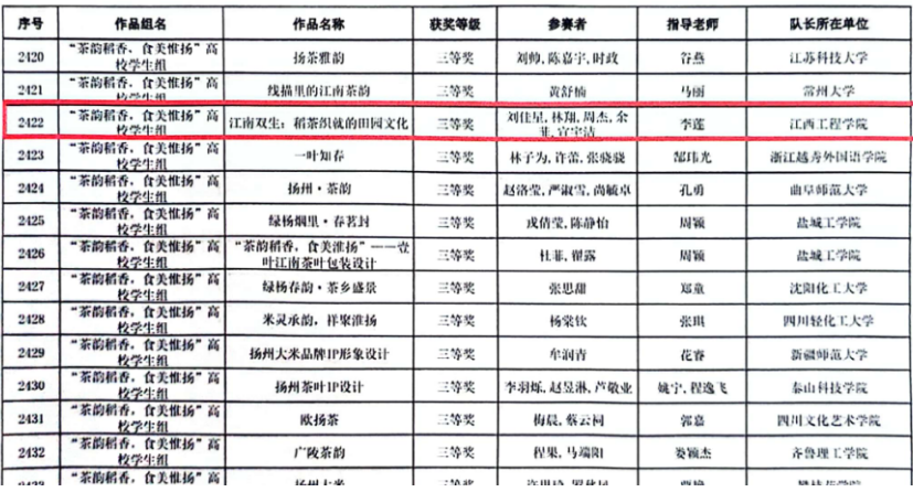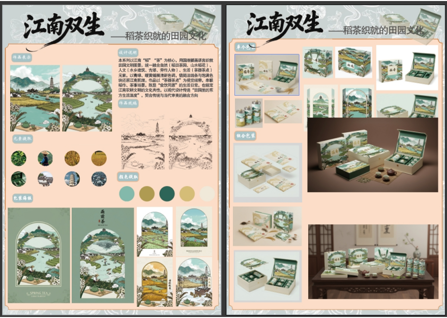 抱石艺术学院视觉传达设计本科专业的参赛团队作品在第十届两岸新锐设计竞赛“华灿奖”赛事中,斩获全国三等奖,参赛作品紧扣赛事定向主题“茶韵稻香,食美惟扬”,以茶、稻等传统饮食文化元素为核心,融合现代设计语言打磨作品。这一成果不仅是对团队师生专业能力的直接肯定,更展现了抱石艺术学院设计类专业“文化赋能+实践创新”的教学成效与学子的创作实力。