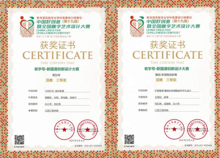 【4】抱石艺术学院学子在2025第13届未来设计师·全国高校数字艺术设计大赛(NCDA)中斩获佳绩