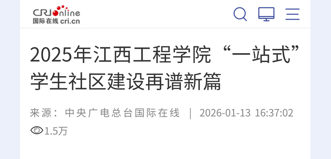 站在新的发展起点,江西工程学院表示,将以2025年工作成果为新基石,持续深化“一站式”学生社区建设改革,进一步完善育人体系、创新服务模式、强化阵地效能。始终秉持“为党育人、为国育才”的初心使命,以更高站位、更实举措、更强担当,持续深化“三创五融”育人新模式,不断完善“一站式”学生社区建设,为培养更多堪当民族复兴重任的时代新人、服务江西高质量发展贡献江工智慧与江工力量。