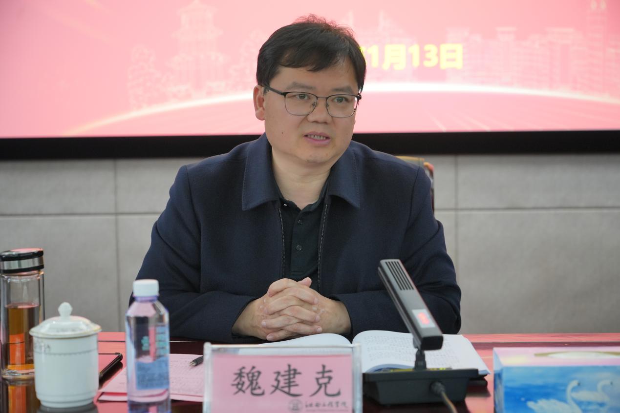 1月13日,我校在天工校区行政楼三楼会议室召开2025年度基层党组织书记抓党建述职评议考核暨第四季度书记例会,校党委书记、督导专员魏建克,党委副书记、校长刘新跃出席会议并讲话,在家的党委领导班子成员,党群部门负责人,各党总支(直属党支部)书记,各二级学院院长及专职副书记参加会议。