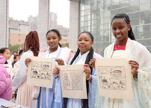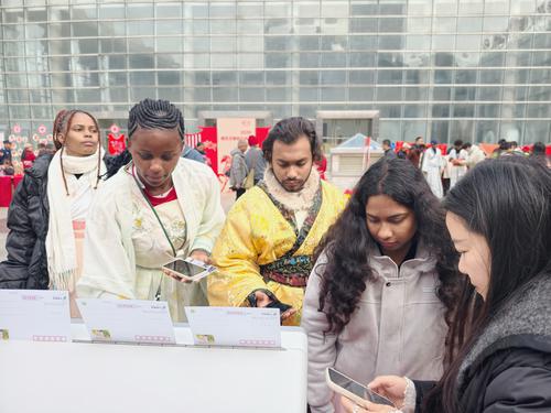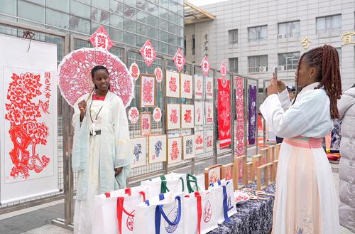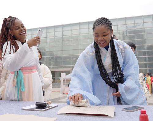 2月3日,分宜县在文化中心广场举行“我们的节日 春节”民俗文化活动,来自江西工程学院的留学生与当地市民一道体验拓印、剪纸等传统民俗,感受中国年的文化魅力。