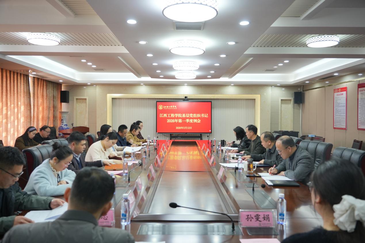 为深入贯彻新时代党的建设总要求和新时代党的组织路线,进一步压实基层党建工作责任,明确2026年党建工作重点任务,推动学校基层党建工作提质增效、走深走实,3月12日下午,江西工程学院2026年第一季度基层党组织书记例会在行政楼七楼会议室召开。党委委员、副校长沈良主持会议并作总结讲话,党委委员、党委宣传部部长于永清,党委委员、党委组织部部长熊文珍,党委办公室主任刘勇出席会议,各党总支、直属党支部书记、专职副书记参加本次会议。