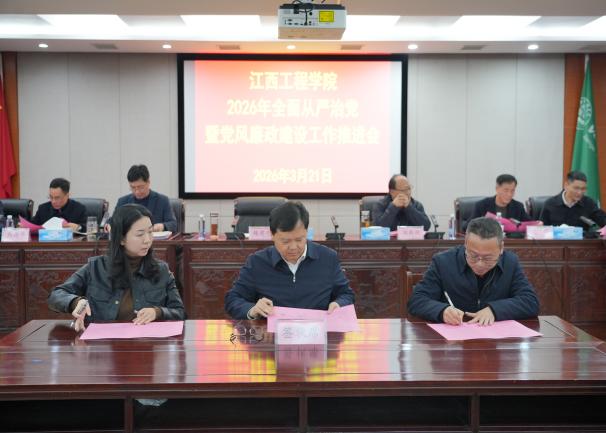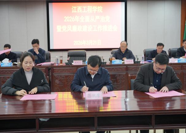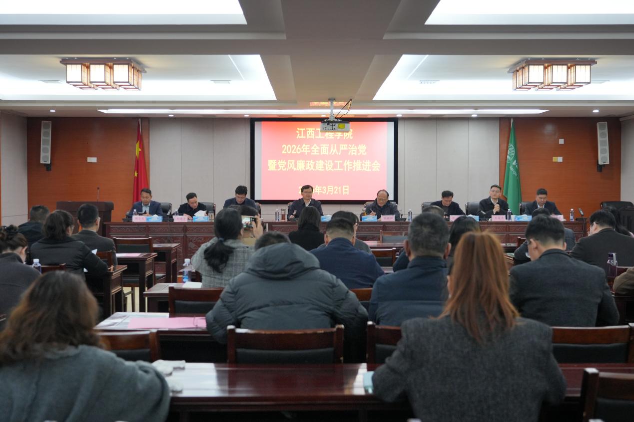 3月21日下午,江西工程学院在行政楼三楼会议室召开2026年全面从严治党暨党风廉政建设工作会议。会议深入学习贯彻习近平总书记在二十届中央纪委五次全会上的重要讲话和全会精神,总结2025年学校党风廉政建设工作,部署2026年重点任务,以严的基调纵深推进全面从严治党,为学校本科教学工作合格评估与“十五五”高质量开局提供坚强纪律保障。