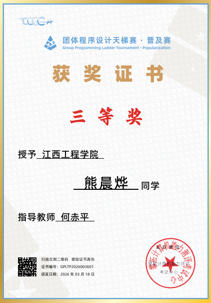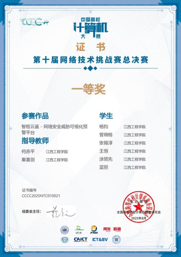 何赤平老师深知学科竞赛是提升学生综合实践能力和创新能力的重要平台,多年来始终深耕竞赛指导一线,甘愿做学生成长路上的 “引路人”。从竞赛选题、方案设计到作品打磨、答辩准备,他全程悉心指导,牺牲课余时间为学生答疑解惑、梳理思路,手把手指导学生攻克技术难题。为了让学生在竞赛中脱颖而出,他带领学生反复打磨作品,模拟答辩场景,针对每一个细节精益求精。在他的悉心指导下,学生团队在 “中国高校计算机大赛——网络技术挑战赛、程序设计天梯赛等学科专业竞赛中屡创佳绩,多名学生凭借竞赛成果提升了实践能力和就业竞争力。