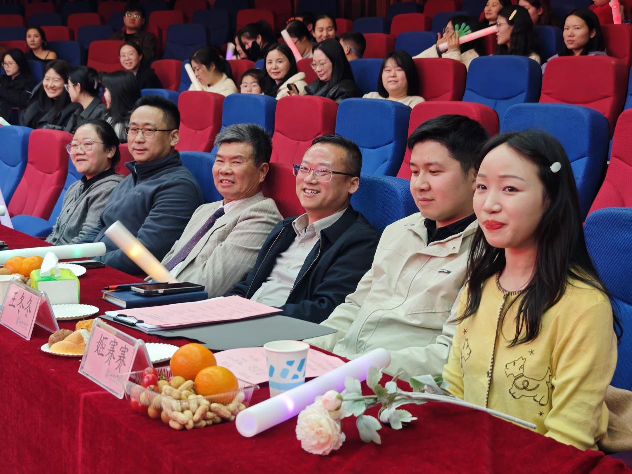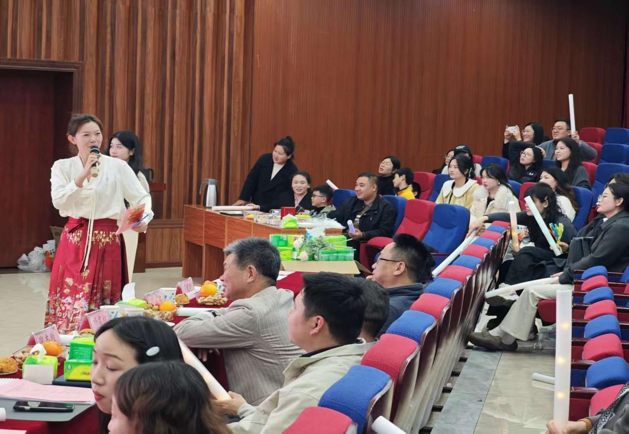 杨名权理事的讲话鼓舞人心,现场掌声经久不息。随后,由游宇昕、黄文涛、李萌担任主持的文艺汇演正式拉开帷幕。开场拉丁舞热情奔放、动感十足,瞬间点燃全场氛围,尽显艺术学院教师的活力与风采。