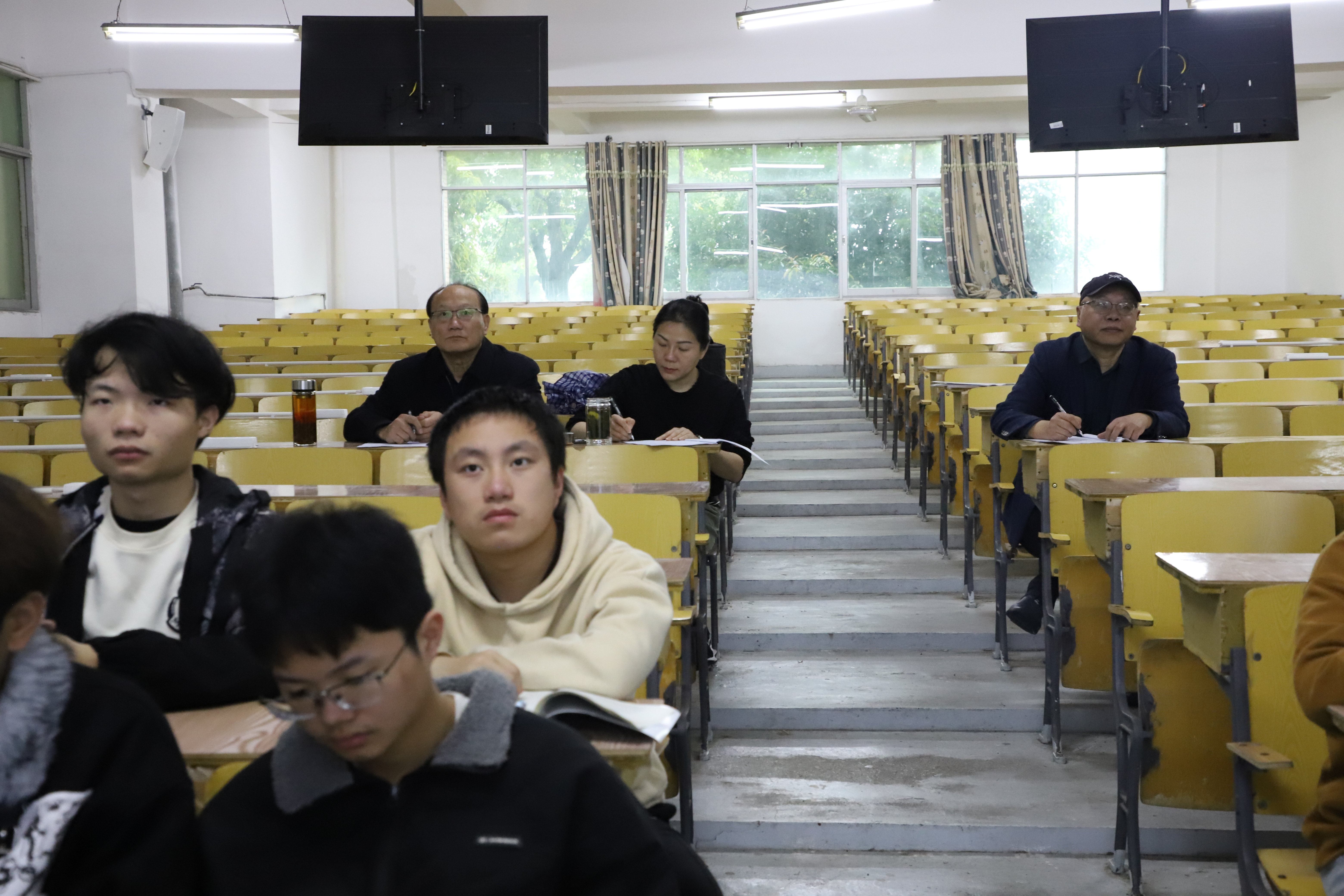 马克思主义学院院长王勇,校办主任黄宏丽陪同听课。