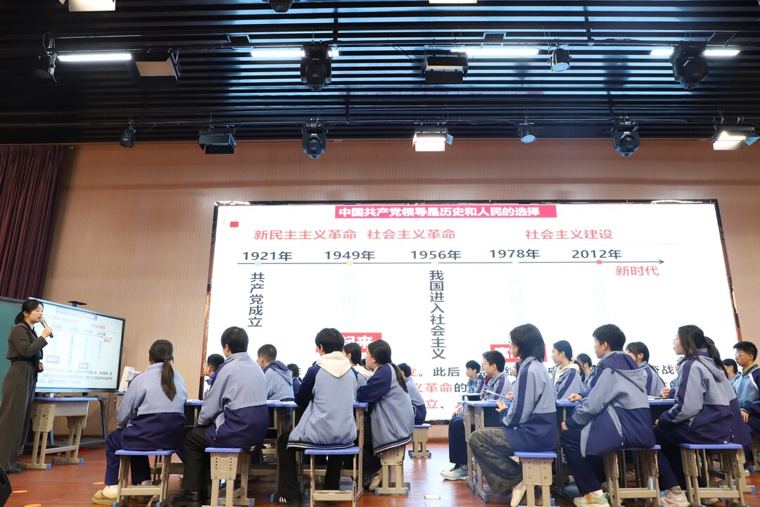 今年活动全面升级,将说课展示转为有生课堂教学,对教师教学能力提出更高要求。首季活动以“家”字为统领,遵循“家园-家国、感知-担当”育人逻辑,构建“小家・大家・国家”螺旋上升教学体系。各学段教师围绕同一主题“同题异构”,精准对接学生认知特点,实现思政教育层次性与连贯性统一。现场专家精准点评、剖析不足,推动教学经验互鉴、资源共享,让党的创新理论在各学段落地生根。