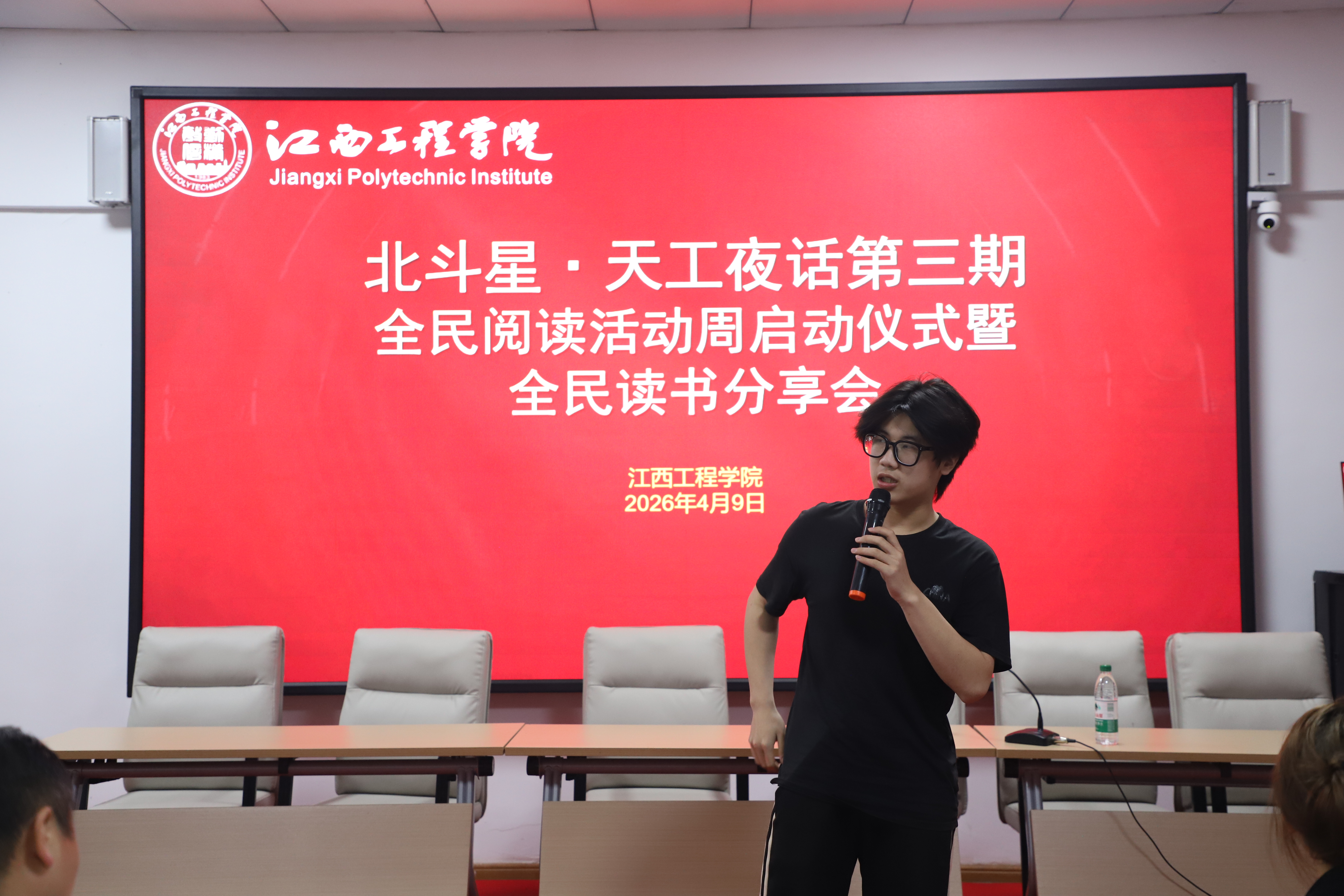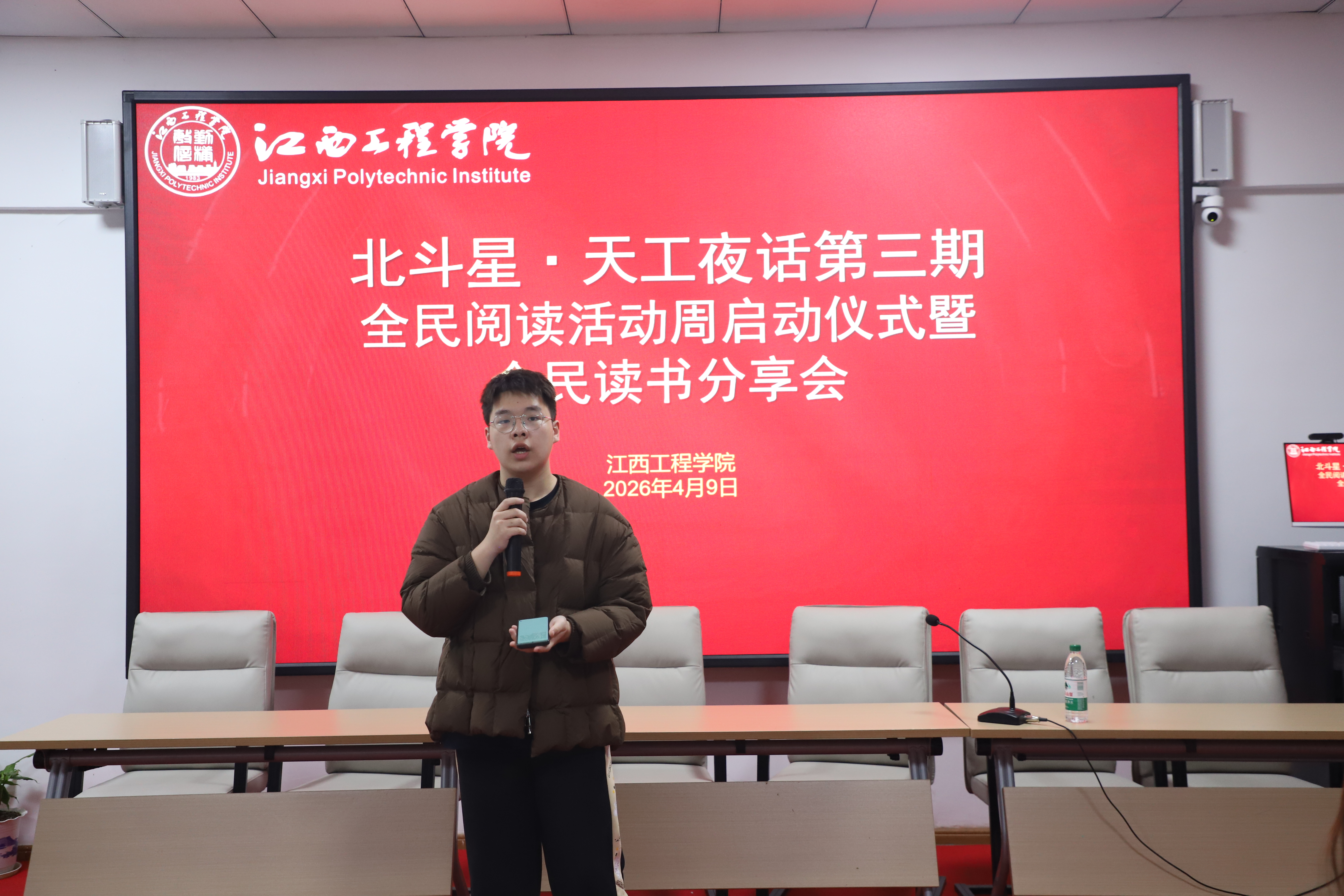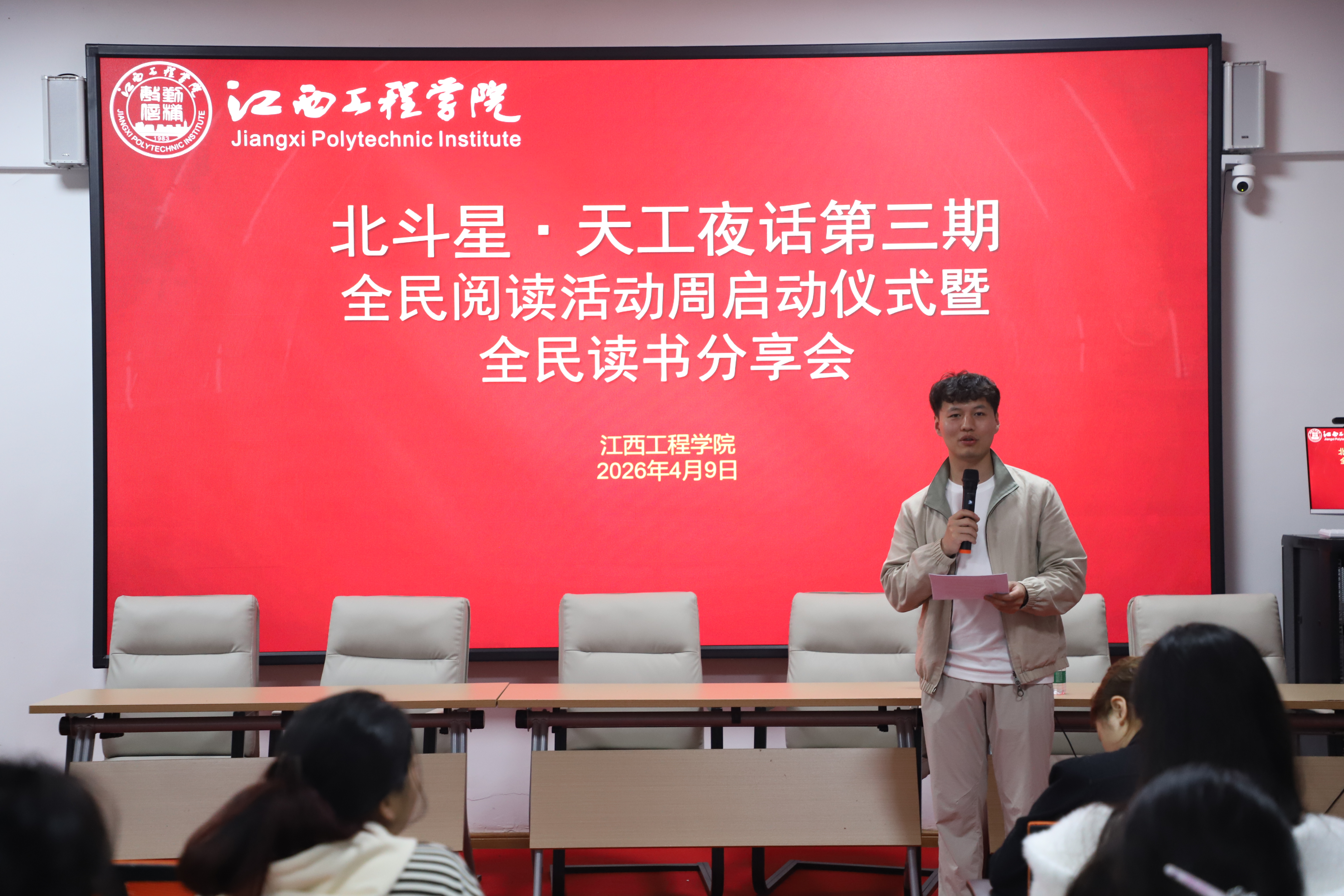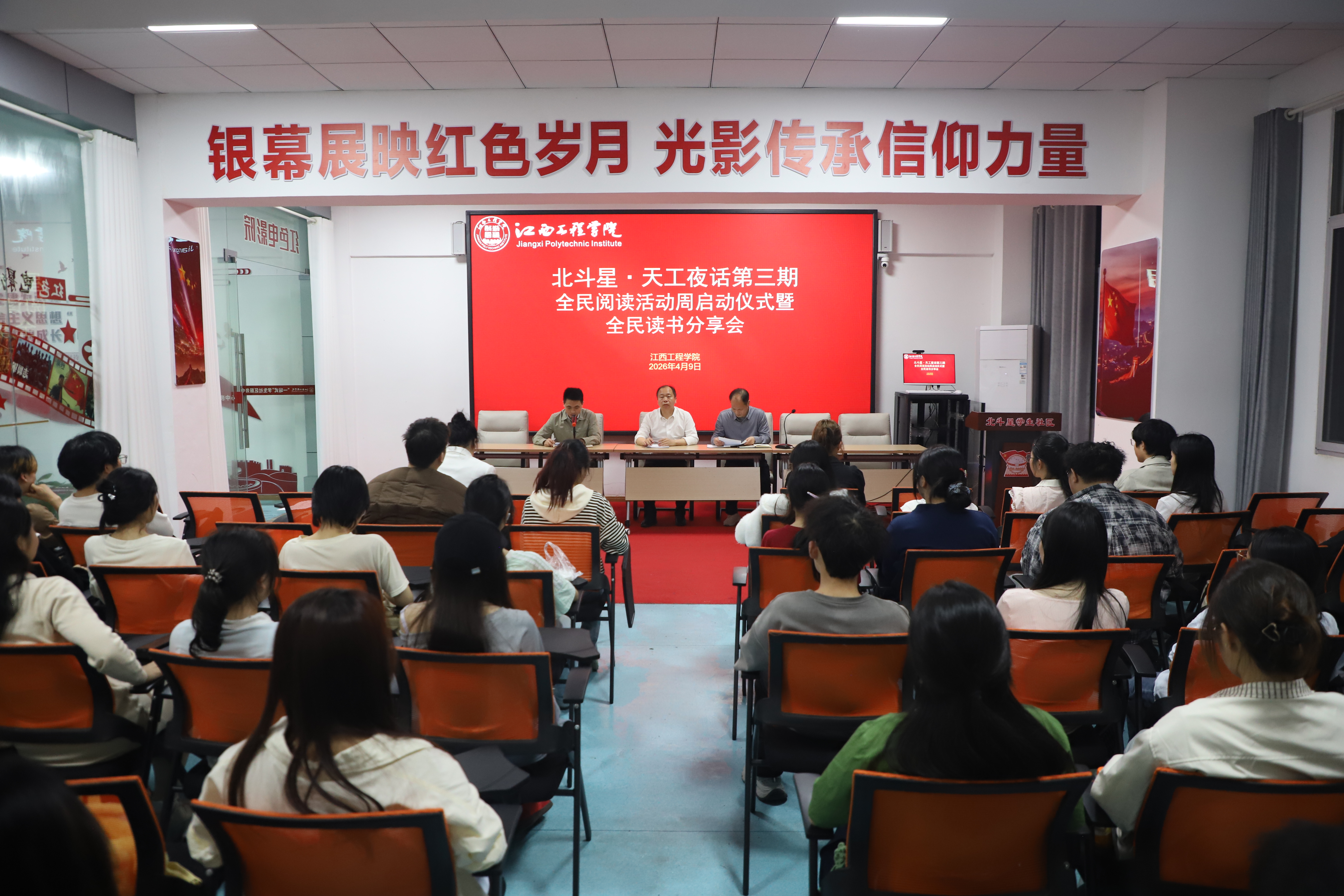 为深入贯彻《全民阅读促进条例》及教育部“书香激扬青春”读书行动要求,落实立德树人根本任务,以文化赋能本科教学工作合格评估,4月9日晚,江西工程学院“北斗星・天工夜话”第三期“全民阅读活动周”启动暨红色影院读书分享会在“一站式”学生社区红色影院如期开展。图书馆馆长彭林华、马克思主义学院直属党支部书记于永清、学工部及团委相关领导、辅导员代表与60名学生代表齐聚一堂,以书为媒共话成长,拉开了学校“书香润校迎评估,智读笃行育新人”主题读书月的序幕。活动由学工部副部长、学生社区管理中心主任朱鹏飞主持。
