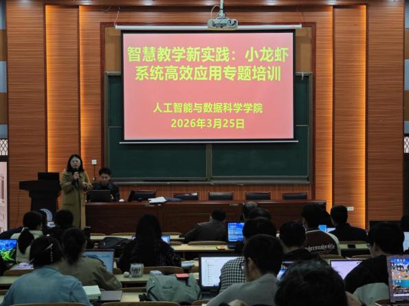 为深入落实教育数字化战略转型要求,推动AI技术与专业教学深度融合,破解传统教学中技术与实践脱节、教师实操能力不足的痛点,2026年3月25日下午,人工智能与数据科学学院在仙女湖校区二楼报告厅举行“智慧教学新实践:小龙虾系统高效应用”专题培训。