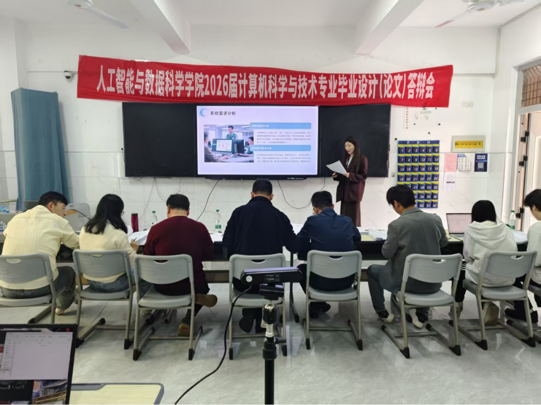 为全面检验本科毕业生学业成果,严把人才培养质量最后一道关口,2026年4月15日,人工智能与数据科学学院2026届本科毕业设计(论文)答辩工作在教学楼C栋顺利开展。
