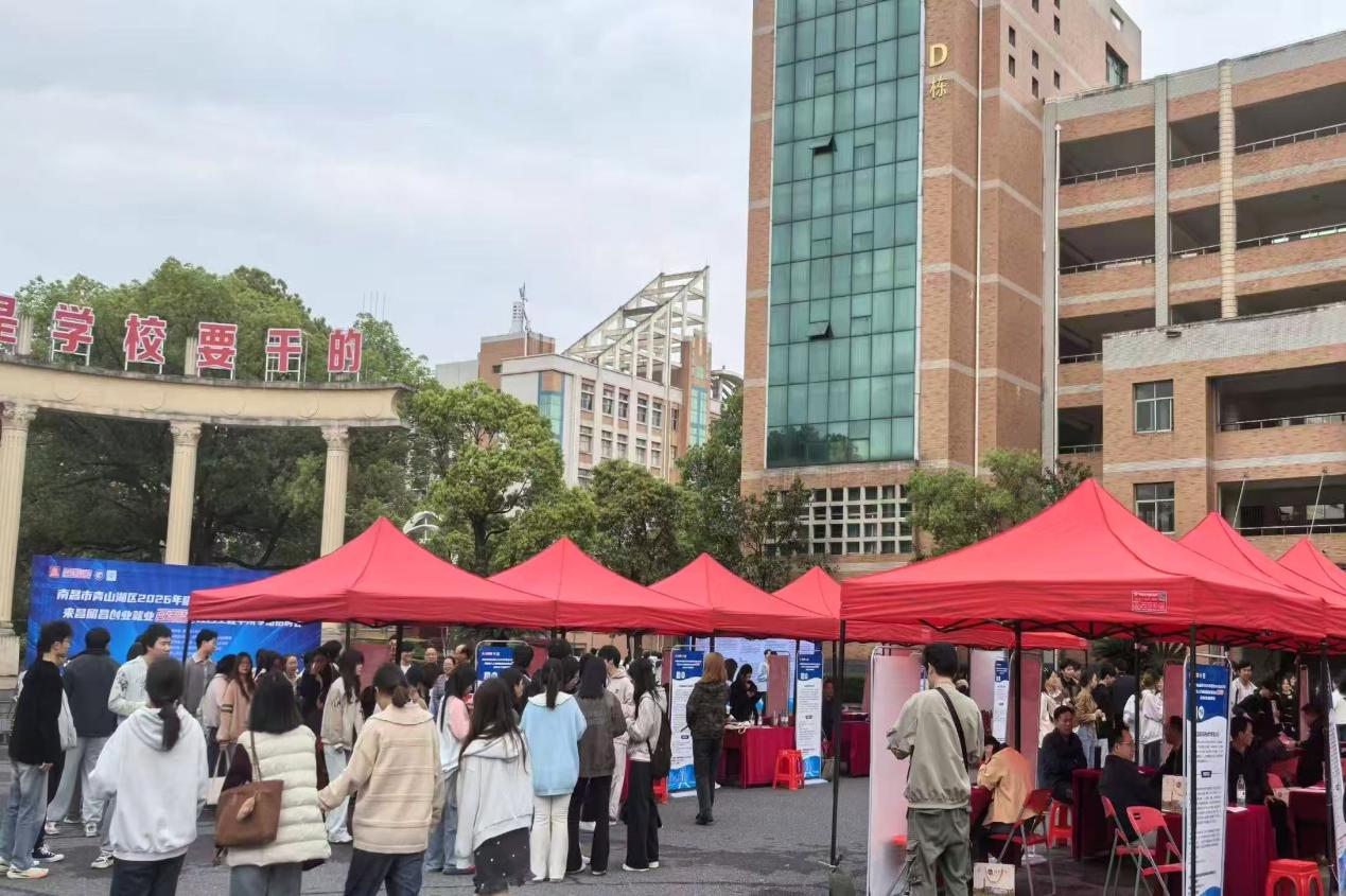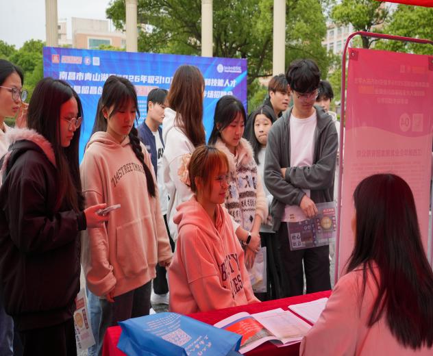 为深入贯彻人才强市战略,积极响应南昌市“每年吸引10万名大学生和技能人才来昌留昌创业就业”工作部署,4月23日下午,南昌市青山湖区2026年“百场校招”江西工程学院专场招聘会在我校天工校区读书广场顺利举行。